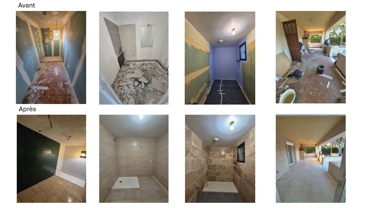 Reprise de supports, mise à niveau, rénovation complète de pièces (salle de bain, cuisine, séjour)